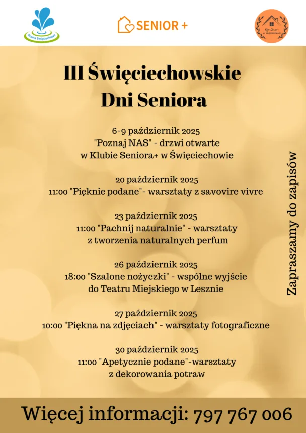 Seniorzy będący uczestnikami Klubu „Senior+” w Święciechowie będą mieli możliwość skorzystanie z takich działań jak warsztaty manualne, zajęcia ruchowe, zajęcia komputerowe, warsztaty kulinarne czy wykłady tematyczne. Ponadto będą mieli dostęp do literatury.
